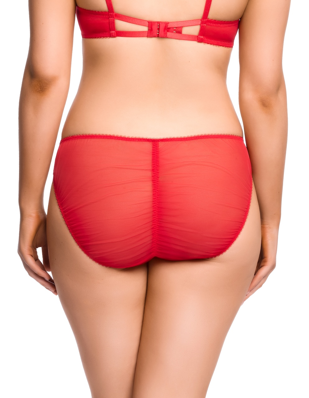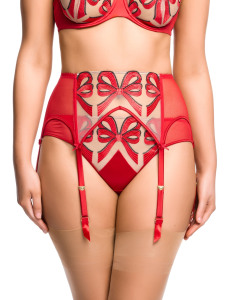 Новая коллекция «Beau Bait» — это воплощение безупречного вкуса и фирменной эстетики Диты фон Тиз, отражающей её утончённый подход к дизайну и любви к винтажному гламуру. Каждая модель линии передаёт характерный стиль Диты — изысканную чувственность, театральную соблазнительность и неизменную элегантность. Прозрачный тюль украшен изящной вышивкой в виде алых бантов с контрастной чёрной окантовкой, создающей выразительные и графичные акценты на теле. Эта коллекция — дань страсти, феминности и артистизму, которые стали неотъемлемой частью творческого ДНК Диты фон Тиз.